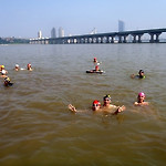 7:30 싸이비님 차에 얻어타기 위해 군자역으로 가요. 군자역 앞에 말뚝박고 있으면 택시 기사님들의 스타가 돼요. 모른척. 아닌척. 어깨 부상으로 고양 첫 출전에 실패한 한을 술로 풀어내신 줄리아님 까지 모여서 어울림누리로 이번 대회는 1조 8레인 첫 영자. 지난 대회는 1조 8레인 첫 영자. 그전 대회는 3조 8레인 4 영자. 내 방 같은 8레인에서 등판에 번호 쓰고 출발을 기다려요. 출발 오픈워터의 재미 중 하나는 역시 추월과 몸싸움 이예요. 손톱만 조금 관리 하고 와 주시면 감사. 시합 끝나고 보니 발목과 발에 난도질이 되어 있어요 ㅋ 작라인은 팬층이 두터우니 팬 관리에 항상 신경써줘요. 1조 3.9km 경기를 마치고 밥먹고, 술먹고, 수다떨고, 배 터져요. 경기 등록하고 못 뛰신 분들이 좀 있어서..